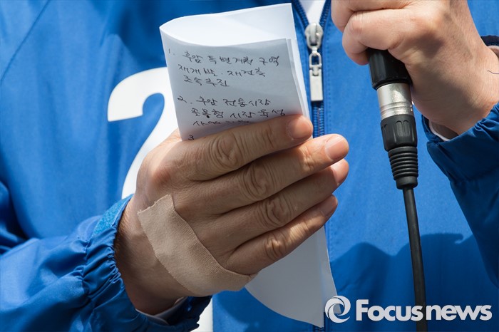 (서울=포커스뉴스) 2016 제20대 국회의원선거를 하루 앞둔 12일 오후 서울 용산구 후암시장 인근에서 김종인 더불어민주당 비대위 대표 겸 선대위원장과 진영 서울 용산구 후보가 유권자들에게 지지를 호소하고 있다.