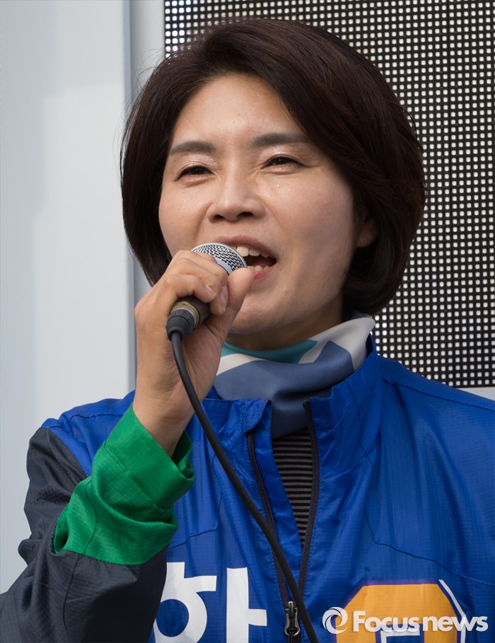 유권자들에게 지지호소 하는 한정애