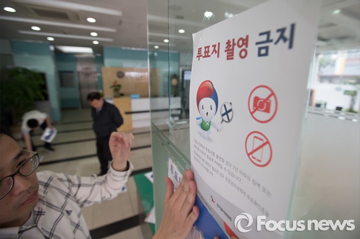 (서울=포커스뉴스) 4.13총선을 하루 앞둔 12일 오후 서울 성북구 보험연수원에 마련된 보문동 제2투표소에서 투표사무원들이 기표소를 설치하고 있다.