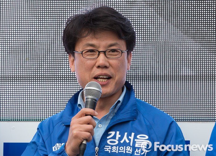 (서울=포커스뉴스) 2016 제20대 국회의원선거를 하루 앞둔 12일 오후 서울 강서구 발산역 인근에서 금태섭 더불어민주당 강서갑 후보, 진성준 강서을 후보, 김종인 비대위 대표 겸 선대위원장, 한정애 강서병 후보가 유권자들에게 지지를 호소하고 있다.