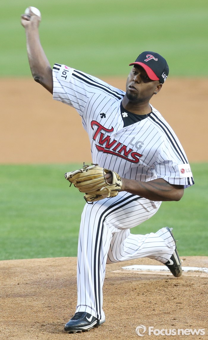 (서울=포커스뉴스) 12일 서울 잠실구장에서 열린 2016 프로야구 롯데-LG 경기에서 1회초 LG 선발투수 소사가 투구하고 있다.