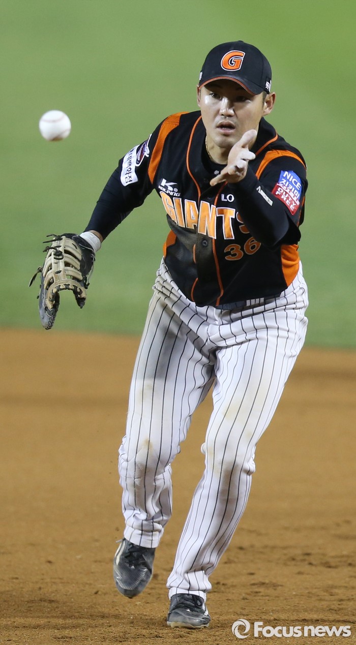 1루로 볼 토스하는 박종윤