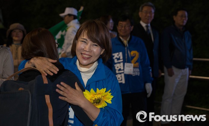 △ 마지막 유세, 시민과 포옹하는 전현희