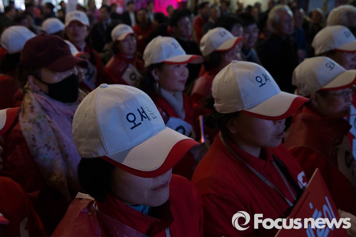 (서울=포커스뉴스) 20대 총선을 하루 앞둔 12일 오후 서울 종로구 경복궁역 일대에서 오세훈 새누리당 종로구 후보측이 막바지 선거유세를 하고 있다.