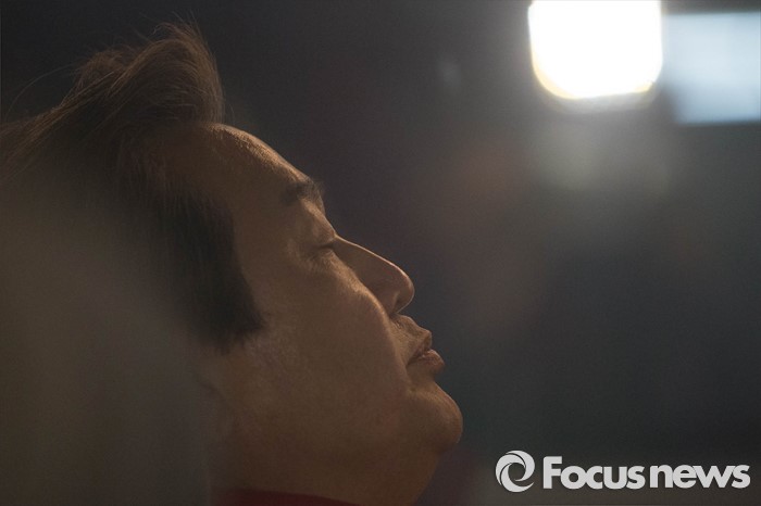 (서울=포커스뉴스) 20대 총선을 하루 앞둔 12일 오후 서울 용산구 서울역 KTX 플랫폼에서 김무성 새누리당 대표가 부산으로 가는 기차에 탑승해 생각에 잠겨있다.