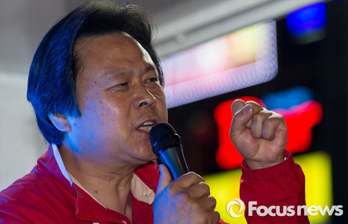 (창원=포커스뉴스) 4.13총선 선거운동 마지막날인 12일 오후 경남 창원시 상남분수광장에서 강기윤 새누리당 창원 성산구 후보가 유권자들의 지지를 호소하고 있다.