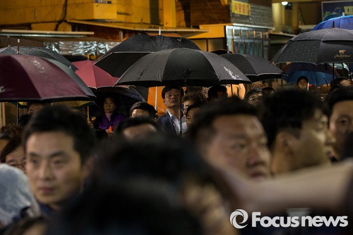 (대구=포커스뉴스) 12일 오후 대구광역시 동구 평화시장 닭똥집골목에서 권은희 무소속 대구 북구갑 후보, 유승민 무소속 대구 동구을 후보, 유성걸 대구 동구갑 후보 지지자들이 후보들의 마지막 유세를 경청 하고 있다.