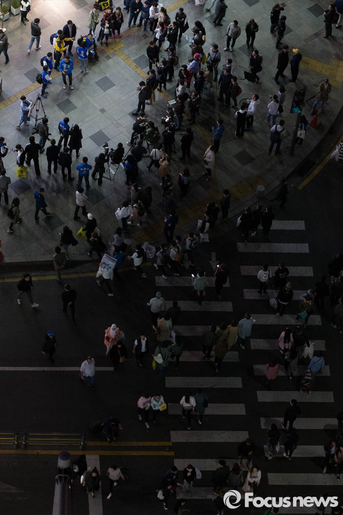 (서울=포커스뉴스) 20대 총선을 하루 앞둔 12일 오후 서울 중구 신평화시장 일대에서 더불어민주당 비례대표들이 총력 유세를 준비하고 있다.