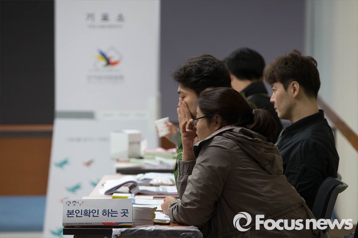 (서울=포커스뉴스) 제20대 국회의원선거일인 13일 오전 서울 성북구의 한 투표소에서 관계자들이 유권자를 기다리고 있다.
