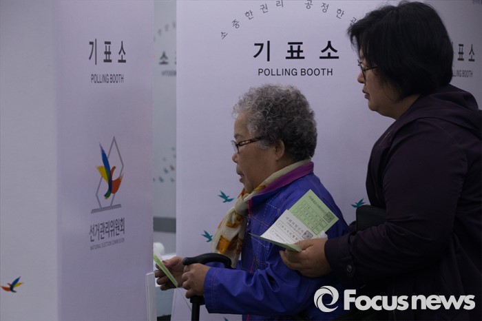 (서울=포커스뉴스) 제20대 국회의원선거일인 13일 오전 서울 서대문구 뉴헤어미용실에 위치한 홍은제2동 제2투표소에서 유권자들이 투표하고 있다.