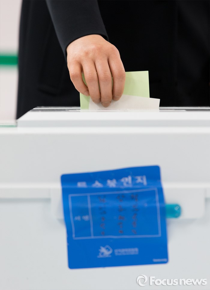 (광주=포커스뉴스) 제20대 국회의원 선거일인 13일 오전 광주 광산구 첨단라인1차아파트 경로당에서 권은희 국민의당 광주 광산구을 후보가 투표를 하고 있다.