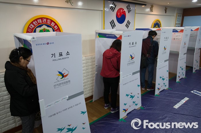 (서울=포커스뉴스) 제20대 국회의원선거일인 13일 오전 서울 강서구 화곡제8동 제5투표소에서 유권자들이 투표하고 있다.