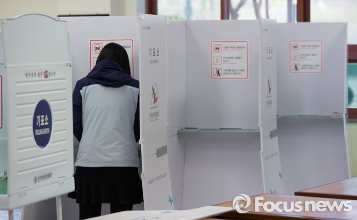 (광주=포커스뉴스) 제20대 국회의원 선거일인 13일 오전 광주 광산구 산월동 봉산초등학교에서 유권자들이 소중한 한 표를 행사하고 있다.