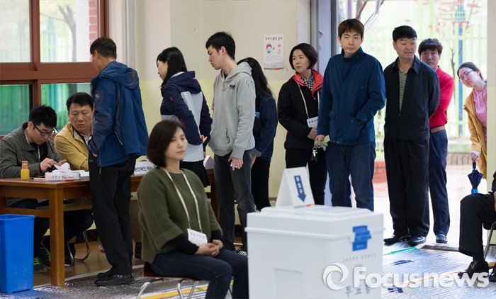(광주=포커스뉴스) 제20대 국회의원 선거일인 13일 오전 광주 광산구 산월동 봉산초등학교에서 유권자들이 소중한 한 표를 행사하고 있다.