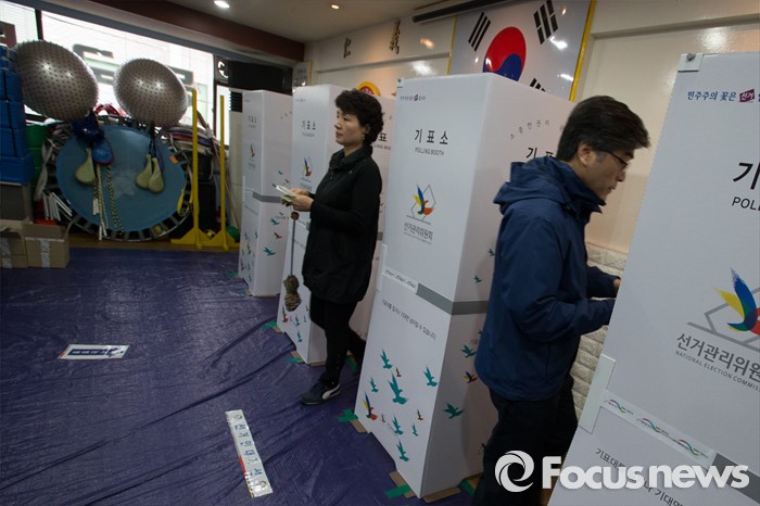 (서울=포커스뉴스) 제20대 국회의원선거일인 13일 오전 서울 강서구 화곡제8동 제5투표소에서 유권자들이 투표하고 있다.