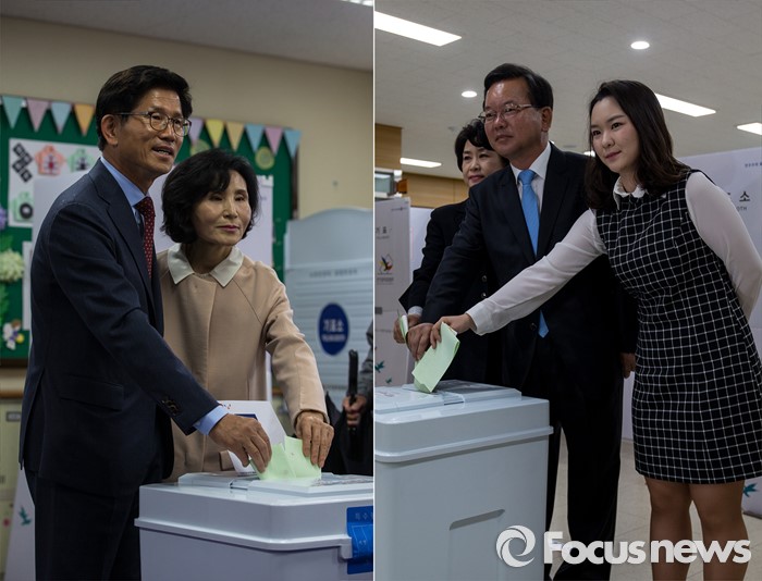 김부겸 더민주 후보는 김문수 후보보다 1시간여 이른 이날 오전 8시 투표장을 찾았다.