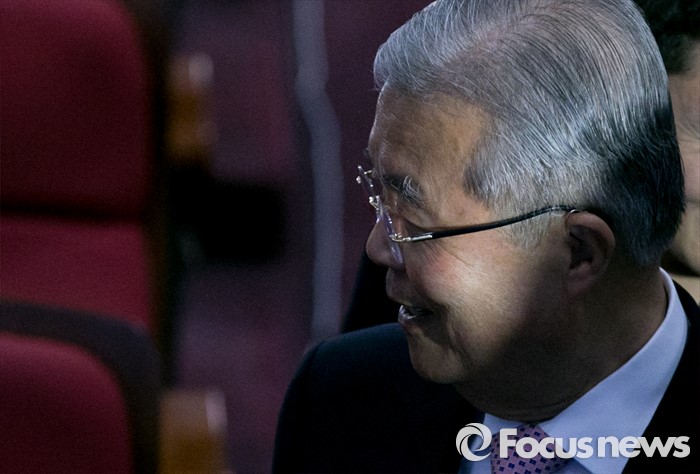 (서울=포커스뉴스) 20대 총선 투표일인 13일 오후 서울 여의도 국회 의원회관 대회의실에 마련된 더불어민주당 개표상황실에서 김종인 비대위 대표 겸 선대위원장이 미소 지으며 입장하고 있다.