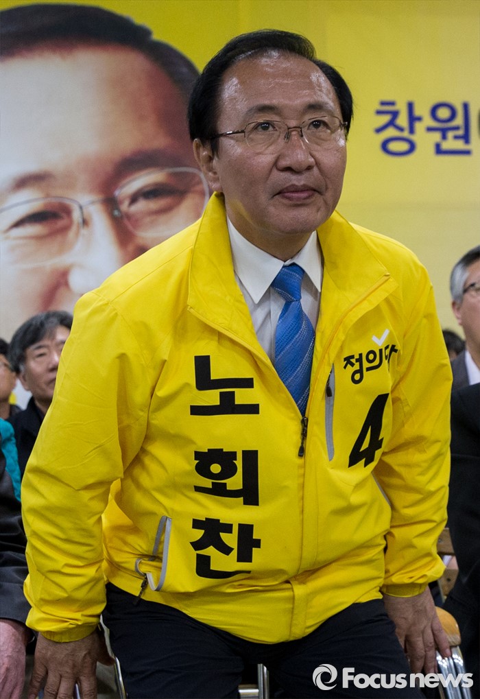 (창원=포커스뉴스) 제20대 국회의원선거가 끝난 13일 오후 창원시 성산구의 선거사무소에서 노회찬 정의당 창원 성산구 후보가 방송사 출구조사를 시청하기 위해 착석하고 있다.