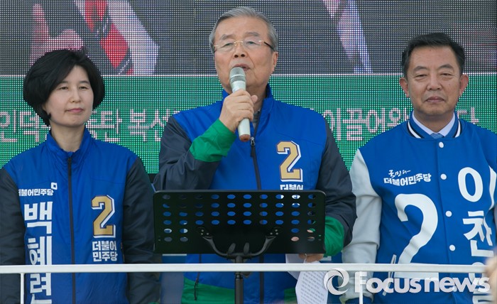 (서울=포커스뉴스) 13일 오후 9시39분 KBS는 개표율 31.3% 현재 경기 수원을 더불어민주당 백혜련 후보가 47.4% 득표율로 당선이 확실하다고 밝혔다.(수원=포커스뉴스) 4일 오후 경기도 지하철 1호선 성균관대역 앞에서 열린 더불어민주당 수원지역 합동유세에 참석한 김종인(가운데) 비대위 대표 겸 선대위원장이 이찬열 수원갑, 백혜련(왼쪽) 수원을 후보의 지지를 호소하고 있다. 2016.04.04 박동욱 기자