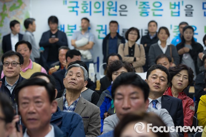 (서울=포커스뉴스) 13일 오후 서울 은평구 강병원 더불어민주당 은평구을 후보의 사무실에서 지지자들이 개표방송을 보고 있다.