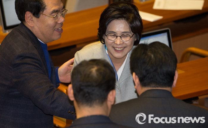 (서울-포커스뉴스) 13일 오후 10시58분 KBS는 서울 성북갑 더불어민주당 유승희 후보가 47.0%를 득표해 당선이 확실하다고 밝혔다.(서울=포커스뉴스) 테러방지법 직권상정에 반발해 야당의 무제한 토론(필리버스터)이 진행되고 있는 24일 오후 서울 여의도 국회 본회의장에서 발언을 마친 유승희 더불어민주당 의원이 동료 의원들과 인사를 나누고 있다. 2016.02.25 조종원 기자