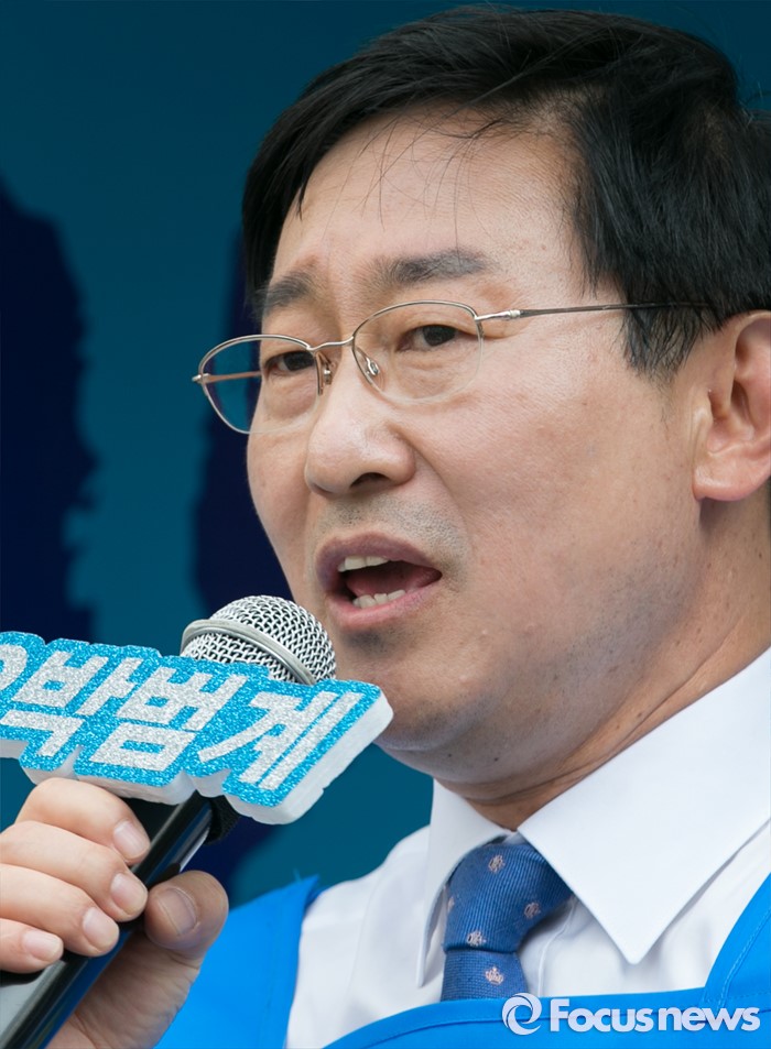 (서울=포커스뉴스) 13일 오후 11시14분 KBS는 개표율 38.7% 현재 대전 서구을 더불어민주당 박범계 후보가 47.5%를 득표해 당선이 확실하다고 밝혔다.(대전=포커스뉴스) 9일 오후 대전 갤러리아백화점 타임월드점 앞에서 열린 더불어민주당 대전 서구 합동유세에 참석한 박범계 서구을 후보가 지지를 호소하고 있다. 2016.04.09 박동욱 기자