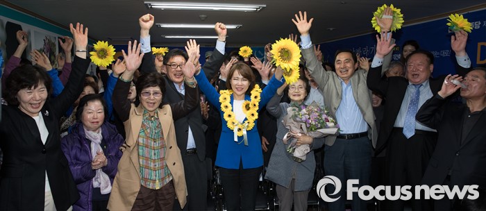 | △ 기뻐하는 전현희 후보 |