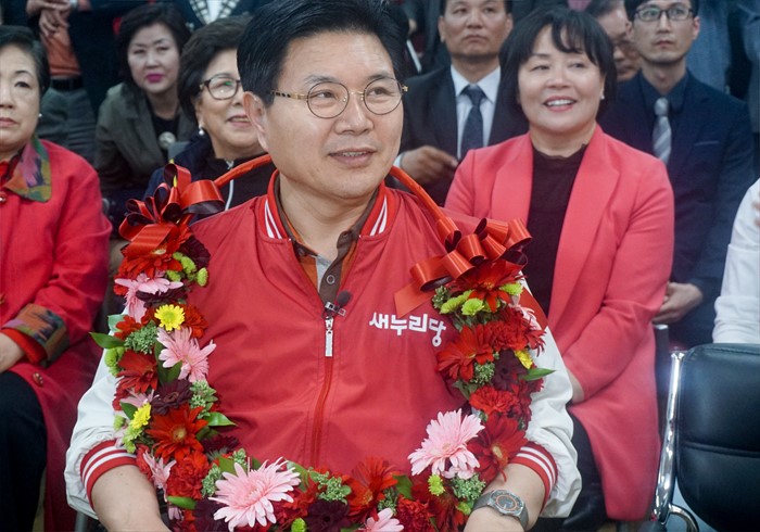 (서울=포커스뉴스) 20대 총선에서 당선이 확정된 홍문종 새누리당 경기 의정부을 후보가 13일 경기도 의정부 자신의 선거사무소에서 기뻐하고 있다. <사진제공=홍문종 후보 선거사무소>