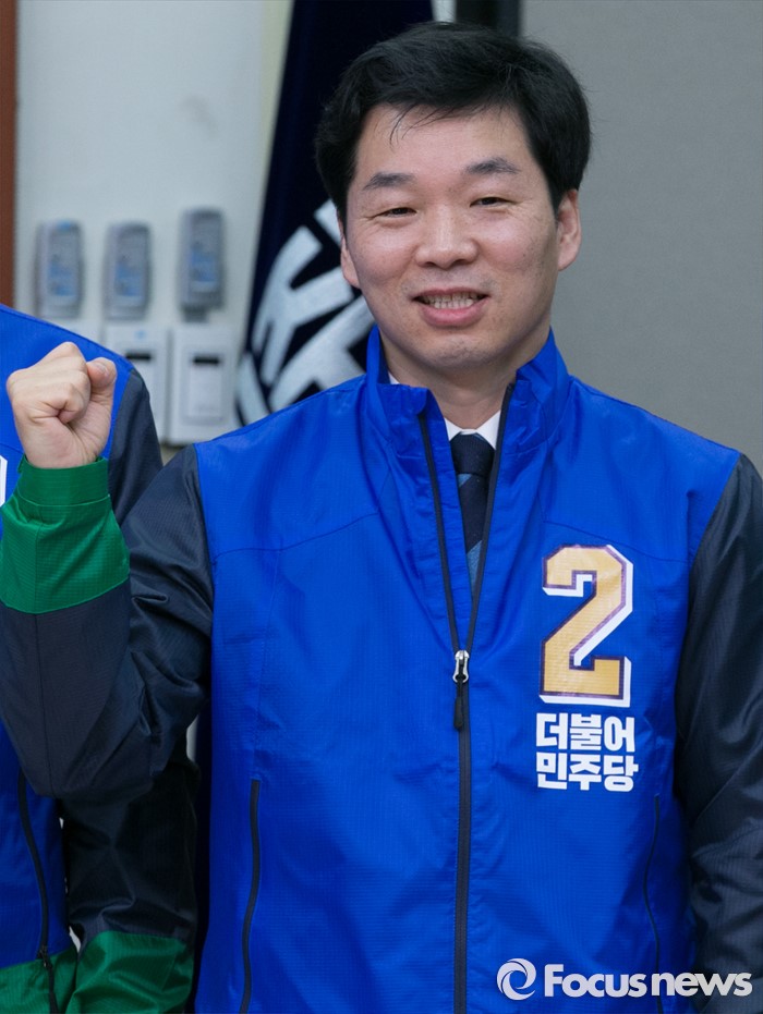 2위는 38.7%를 차지한 새누리당 권혁세후보가 차지했다.(서울=포커스뉴스) 20대 총선 경기 분당갑에 전략공천된 김병관 더불어민주당 비대위원이 7일 오전 서울 여의도 국회에서 비상대책위원회의에 앞서 20대 총선용 유니폼을 입고 취재진을 향해 포즈를 취하고 있다. 2016.03.07 박동욱 기자
