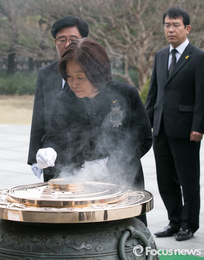 (서울=포커스뉴스) 심상정 정의당 상임대표와 20대 총선 비례대표 당선인들이 14일 오전 동작구 국립서울현충원에서 현충탑 참배를 하고 있다.