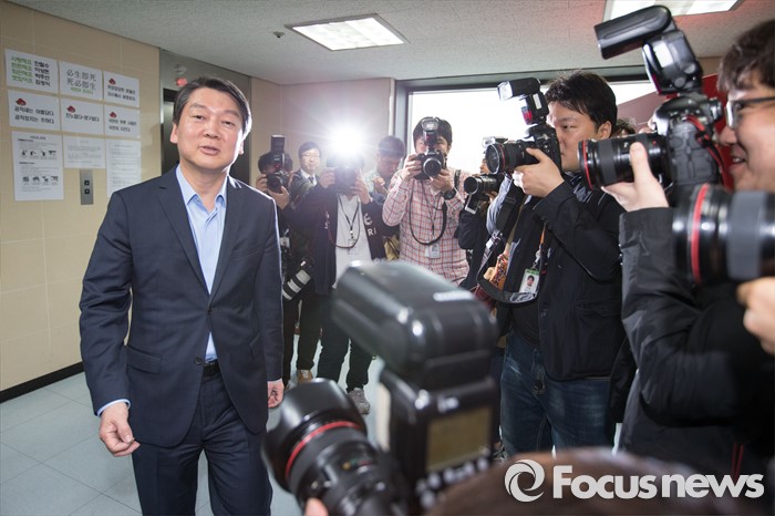 (서울=포커스뉴스) 안철수 국민의당 상임공동 대표가 14일 오전 서울 마포구 국민의당 당사를 들어서고 있다.