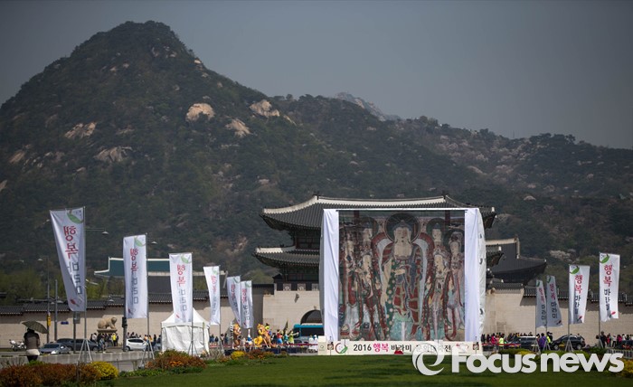 △ 광화문 광장에 걸린 대형 탱화
