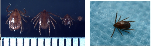 △머리카락, 귀 주변, 팔 아래, 허리, 무릎 뒤, 다리 사이 등에 진드기가 붙어 있지 않은지 꼼꼼히 확인하기작은소피참진드기 모습. <사진출처=질병관리본부>