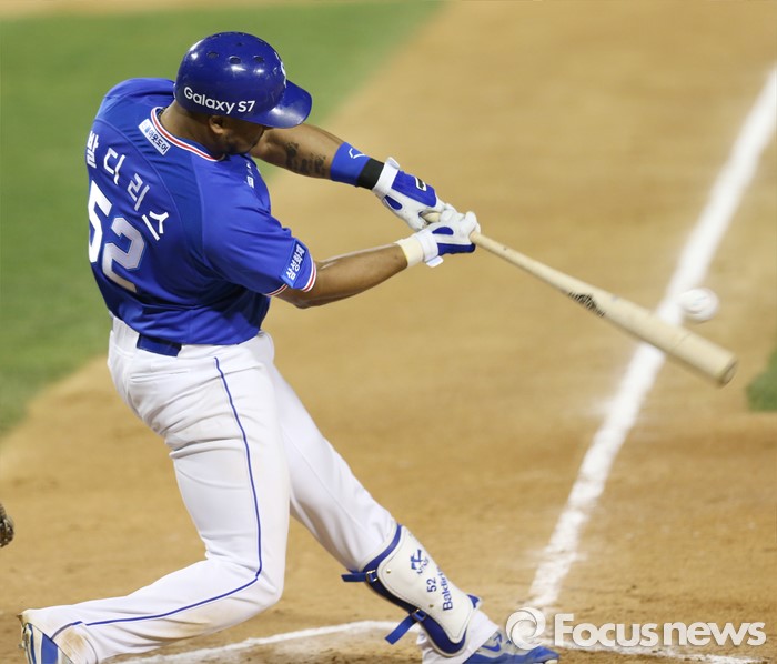 (서울=포커스뉴스) 15일 서울 잠실구장에서 열린 2016 프로야구 삼성-두산 경기 7회초 2사 2루에서 삼성 발디리스가 타격하고 있다.