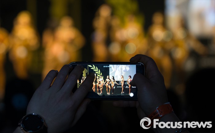 (서울=포커스뉴스) 17일 오전 서울 한강 세빛섬에서 열린 '2016 나바코리아 아시아 오픈 챔피언십(NABBA WFF KOREA ASIA OPEN CHAMPIONSHIP)' 에서 한 관객이 출전한 선수들을 촬영하고 있다.