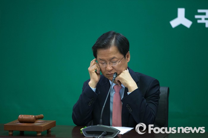 (서울=포커스뉴스) 18일 오전 서울 마포구 국민의당 당사대회의실에서열린 최고위원회의에 참석한 천정배 대표가 회의 중 생각에 잠겨 있다.