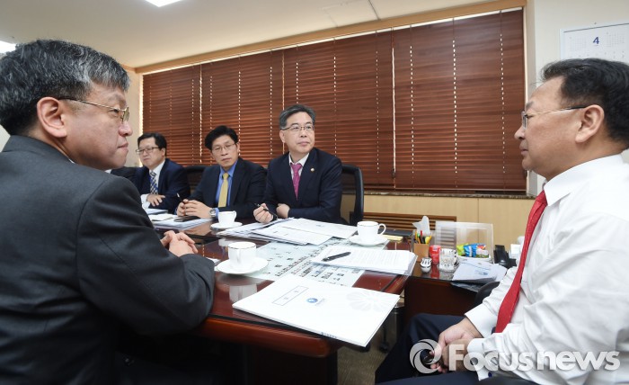 이 연구원은 “노동개혁법·서비스산업기본법·규제프리존법도 19대 국회 임기 중 통과할 수 있도록 앞장서겠다는 유일호 발언도 이러한 맥락”이라면서 “20대 국회 출범 이전까지는 공급과잉 업종에 대한 구조조정 작업도 속도가 날 것”이라고 덧붙였다.18일 유일호 부총리 겸 기획재정부 장관(오른쪽)이 광화문 서울청사에서 기재부 1·2차관을 비롯한 간부들과 현안점검회의를 하고 있다.