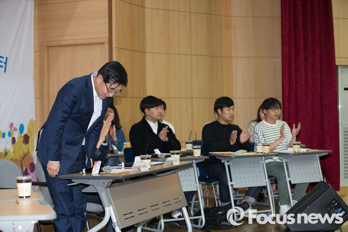 (대전=포커스뉴스) 이기권 고용노동부장관이 대전 유성구 충남대학교를 방문, 대학생들과 함께 찾아가는 정책설명회 및 토크콘서트를 시작하기 앞서 인사를 하고 있다.