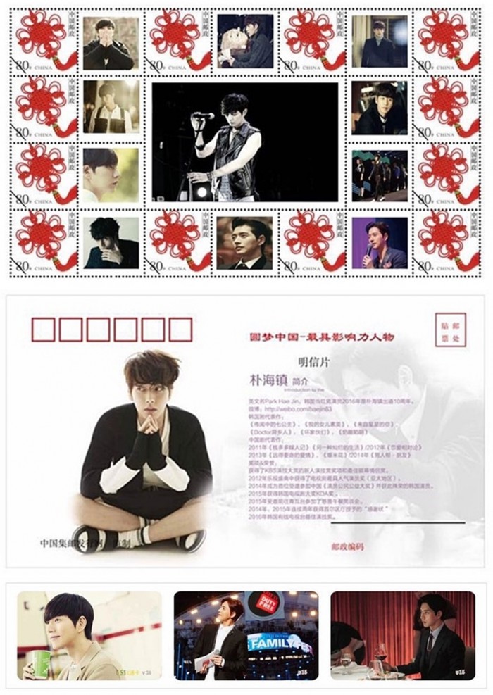 박해진의 소속사 마운틴무브먼트는 18일 "박해진을 모델로 한 우표와 전화카드, 기념주화가 포함된 우표첩 100세트가 한정판으로 발행된다. 698위안(한화 13만원)으로 5월 예약 주문을 시작 한다"고 밝혔다.