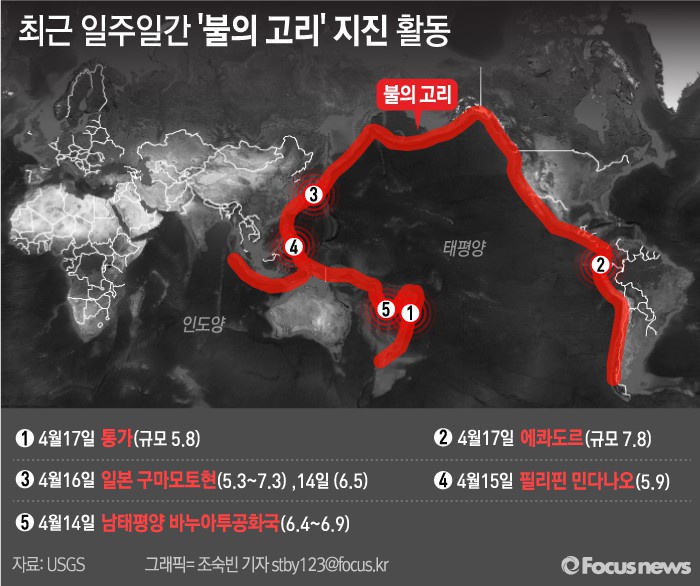 (서울=-포커스뉴스) '불의 고리'로 불리는 환태평양 지진대의 지진 활동이 잦아지고 있다.
