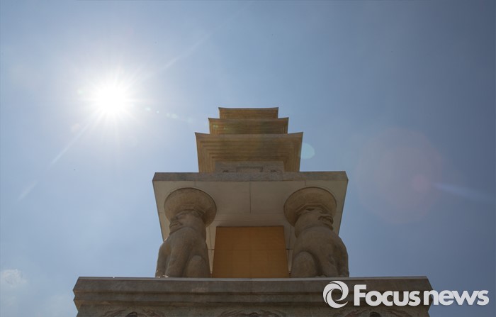 (서울=포커스뉴스) 19일 오전 서울 광화문광장에 봉축장엄등이 설치돼 있다. 20일 광화문광장에서 열리는 봉축장엄등 점등식은 국보 제35호인 화엄사 사사자삼층석탑을 원형으로 삼아 제작됐다.
