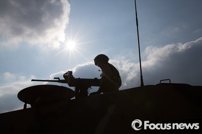 (여주=포커스뉴스) 19일 오전 경기도 여주시 남한강 일대에서 육군 20사단이 K-2 흑표전차 잠수도하훈련을 하고 있다.