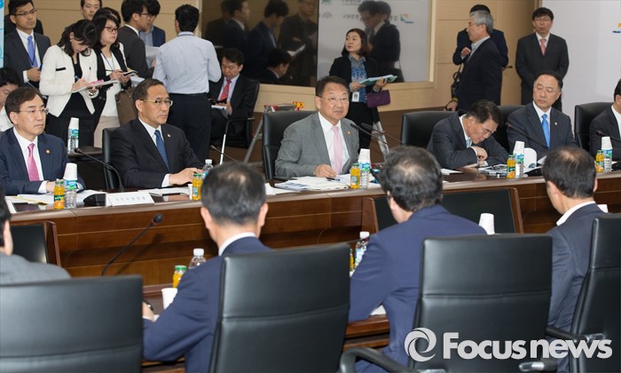 (세종=포커스뉴스) 유일호 경제부총리 겸 기획재정부장관이 19일 오후 세종시 정부세종청사 기획재정부 대회의실에서 열린 2016년 시도지사협의회에 참석해 모두발언을 하고 있다.