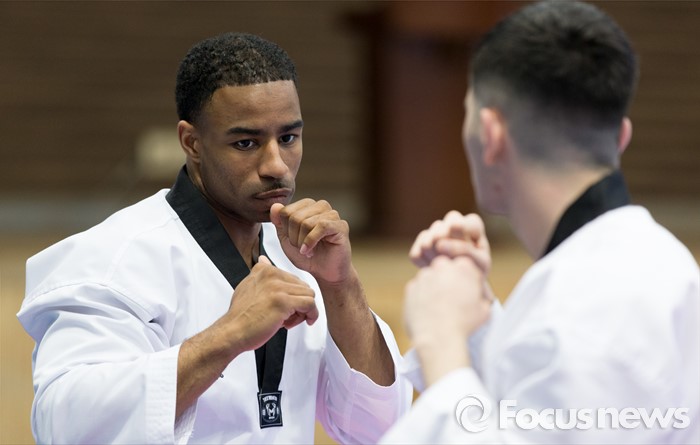 (서울=포커스뉴스) 19일 오후 서울 용산구 국방부 다목적홀에서 한국문화 체험행사에 참가한 주한미군 장병들이 태권도를 배우고 있다.