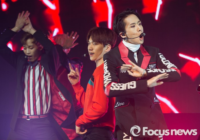 홀서울=포커스뉴스) 19일 오후 서울 마포구 롯데카드 아트센터에서 열린 아이돌그룹 VIXX의 싱글앨범 'Zelos' 발표 쇼케이스에 참여한 멤버들이 신곡 '다이너마이트'의 무대를 선보이고 있다.