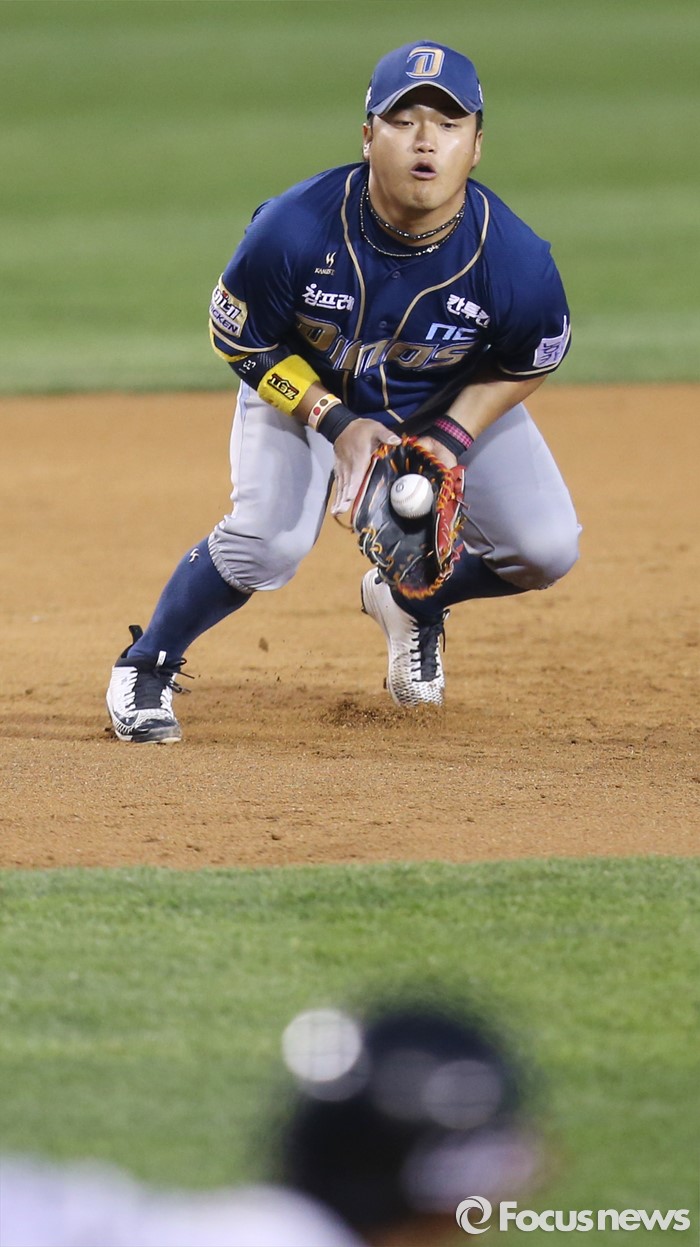 (서울=포커스뉴스) 19일 서울 잠실구장에서 열린 2016 프로야구 NC-LG 경기 3회말 무사 1루에서 NC 3루수 박석민이 LG 정주현의 땅볼 타구를 잡고 있다.