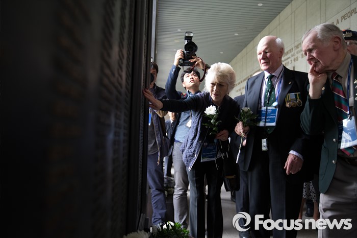 (서울=포커스뉴스) 임진강 및 가평전투 65주년을 맞은 21일 오후 서울 용산구 전쟁기념관에 6.25전쟁에 참전했던 영연방(영국, 캐나다, 호주, 뉴질랜드) 참전용사들이 방문해 유엔(UN) 참전국 전사자 명비를 보고 있다.