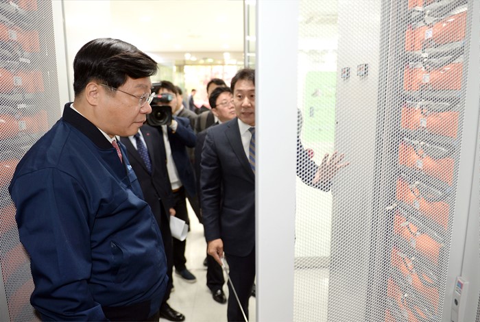 | △ LG화학 오창공장 시설물 둘러보는 주형환 장관 |