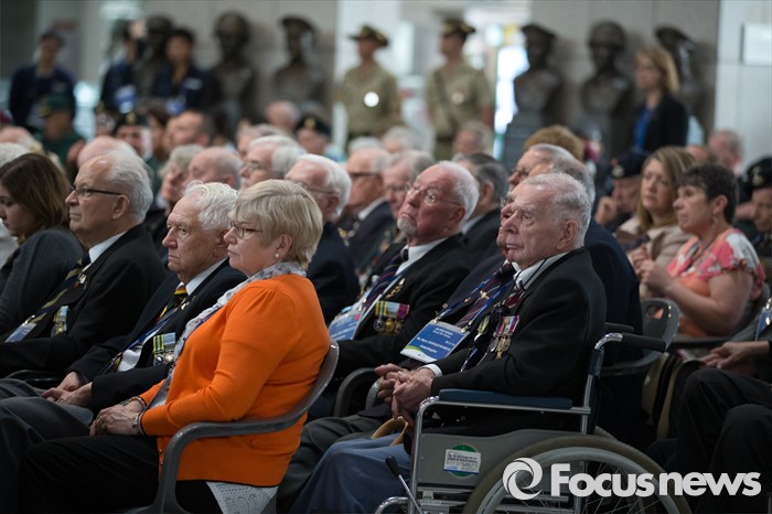 (서울=포커스뉴스) 21일 오후 서울 용산구 전쟁기념관에서 열린 6.25 전쟁영웅 선정패 수여식에서 참전용사들이 참석하고 있다.