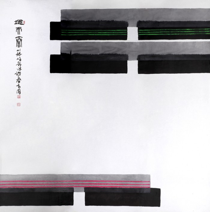 복잡하지 않고 단순한 화면 구성을 위해 먹의 농도를 담채와 농채 2가지로만 처리했다. 흑백 외의 채색으로 회화적 미감을 더했다.